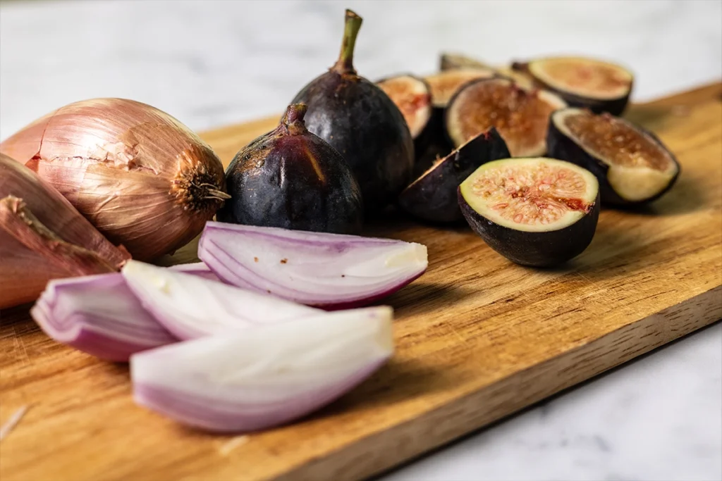 This recipe doesn’t take a lot of prep, but there are a few things you should do before you start cooking, since everything is going to come together very quickly. First, peel the shallots and trim off the end of the root, but keep the base of the shallot intact. Then, quarter the shallots through the root end, so that they’ll stay together when you cook them, instead of breaking apart into slices. For the figs, trim the stems and slice them in half, or quarter the larger figs. This time of year, you’re likely to either find fresh Black Mission Figs or Brown Turkey Figs fresh in stores and at markets. Both varieties are delicious in this recipe.