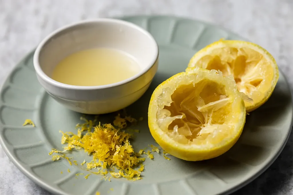 - Zest and juice the lemon, reserving 1 tbsp of zest and ¼ cup of juice.