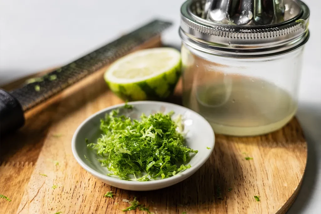 - Meanwhile, zest and juice the limes and measure ¼ cup of juice and 2 tablespoons of zest. Set both aside.