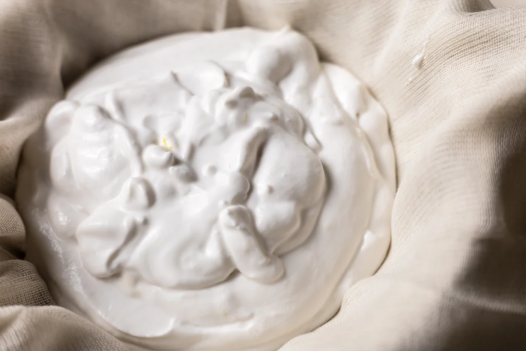 - Unwrap the cheesecloth and scoop the thickened labneh into a clean bowl.
