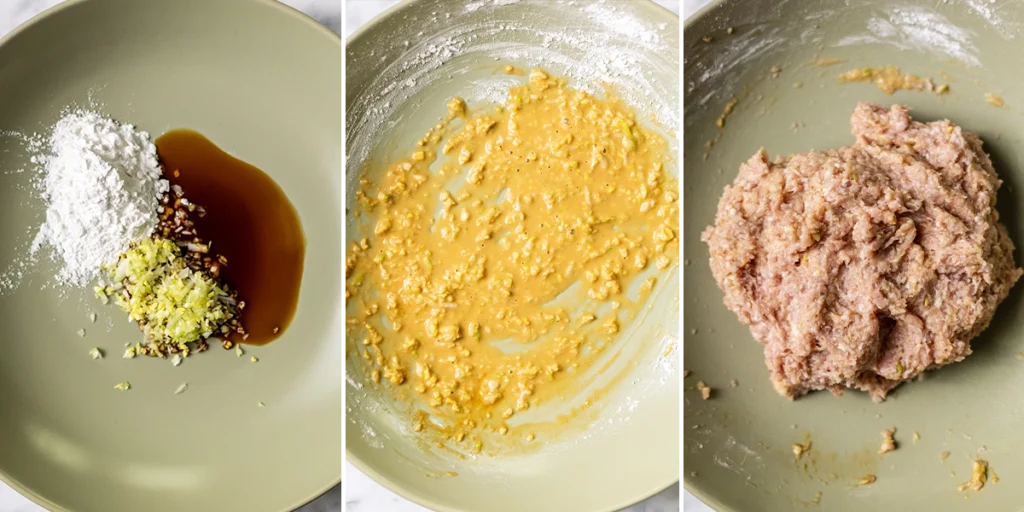 • Transfer to a bowl and whisk in the tapioca starch, coconut aminos, fish sauce and salt to form a slurry.