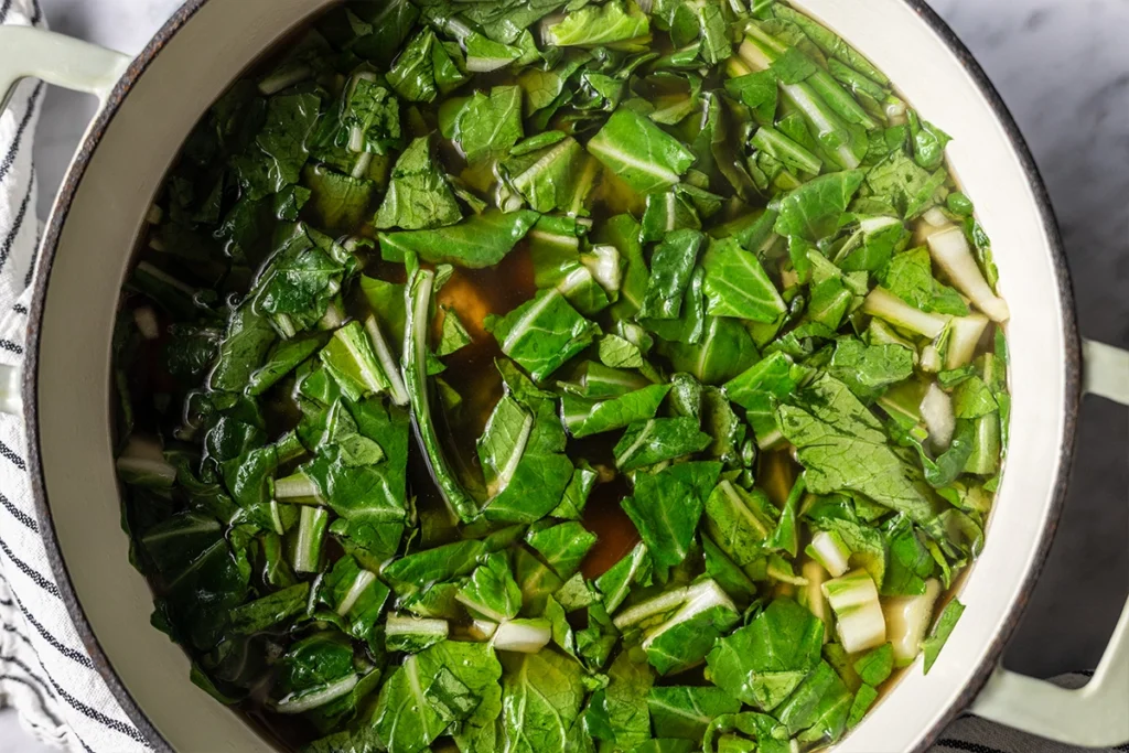 • Simmer until the meatballs are cooked through and the greens are tender.