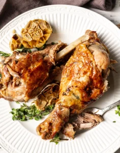 - In a blender, small food processor or with an immersion blender, combine the apple cider vinegar, olive oil, maple syrup, thyme, mustard, garlic, and salt.