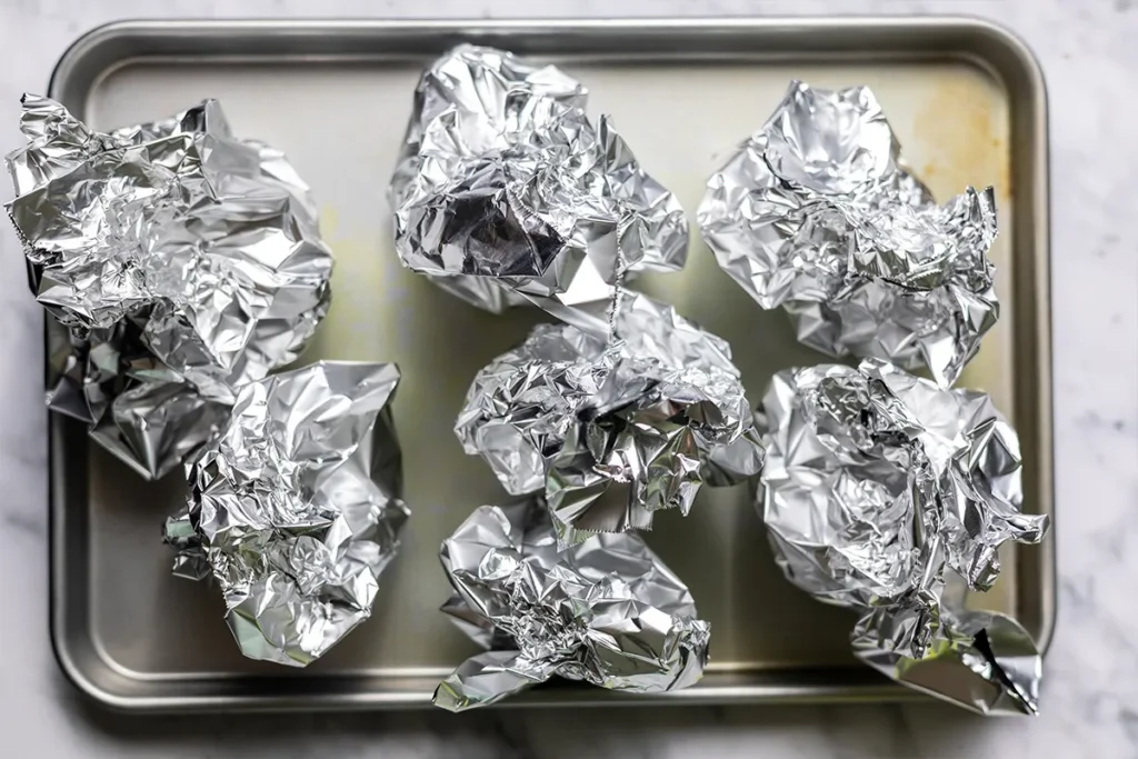 This is the easiest way to prepare beets. Give them a good scrub, then cut the tops and the root tips. Place one (or two, if they’re small) in the center of a sheet of aluminum foil, drizzle with olive oil, season with a pinch of salt, then crinkle up the foil at the top to make a packet.