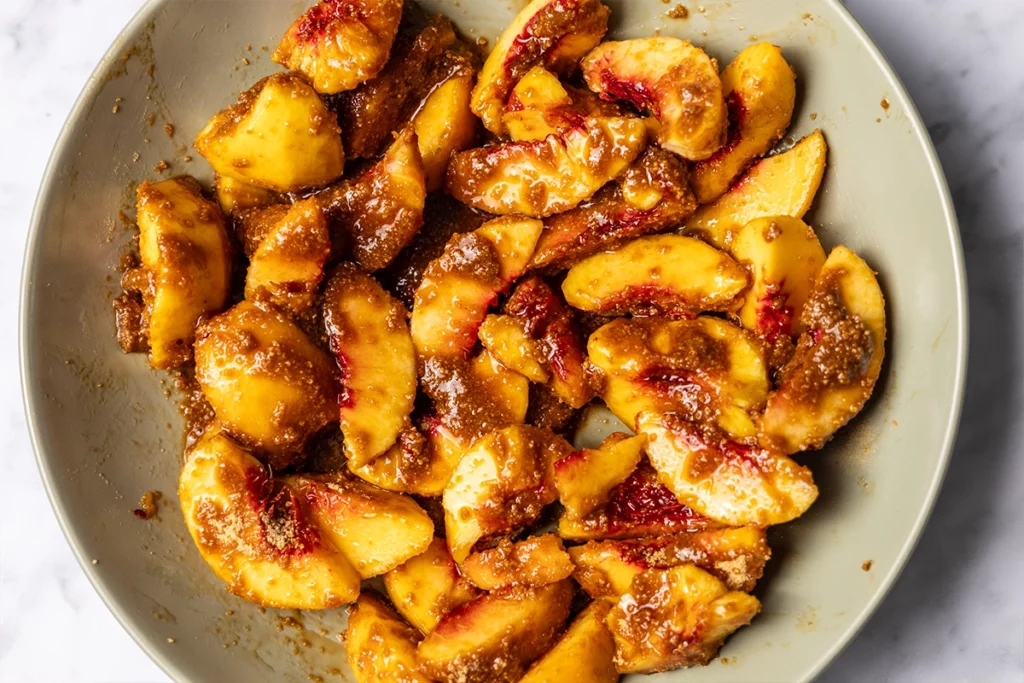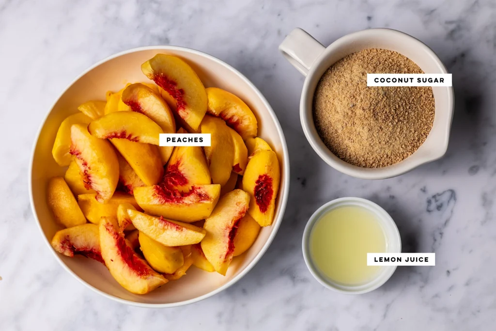 - Toss the peaches with coconut sugar and lemon juice until evenly coated.