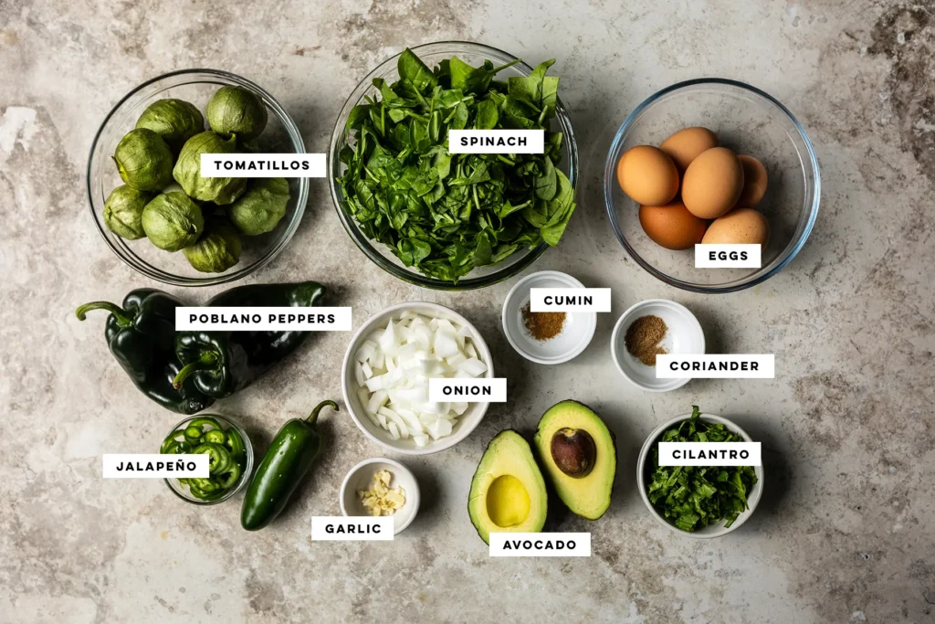 This tomatillo shakshuka is fully compliant with Paleo and Whole30. It’s built around whole, unprocessed ingredients—roasted tomatillos, poblano peppers, onions, garlic, leafy greens, and eggs—without refined sugar, grains, dairy, or seed oils.