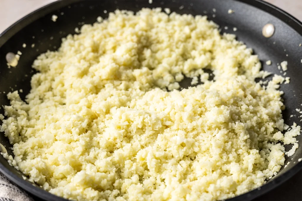 - Heat a half tablespoon of olive oil in a large skillet over medium heat. Add fresh or frozen cauliflower rice and sauté until tender, about 5 minutes. Season to taste.